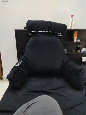 This back support bed pillow provides strong support to my dads back. I bought this for my dad unhe peeth mein bohot dard rehti thi but iss pillow se unhe kaafi back support mili hai and it is very comfy and quite sturdy. He uses it while long hours of sitting and reading the newspaper. Ye ek sitting pillow aur reading pillow ke liye best option hai I highly recommend this to all.